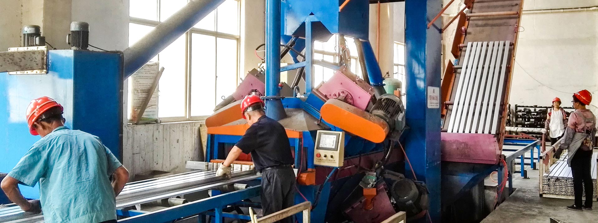 專業(yè)生產(chǎn)多種鋁合金型材及制品的企業(yè),已有二十多年的經(jīng)驗和歷史。現(xiàn)有鋁型材擠壓設(shè)備四套,分別為1800T、1000T、630T、600T擠壓生產(chǎn)配套設(shè)備有10m長不銹拋丸機。6m鋁型材表面拋光機,4.5m普拉迪鋁材加工中心,多臺高精度自動切割機,雙頭轉(zhuǎn)向切割機,備有12m長時效爐。